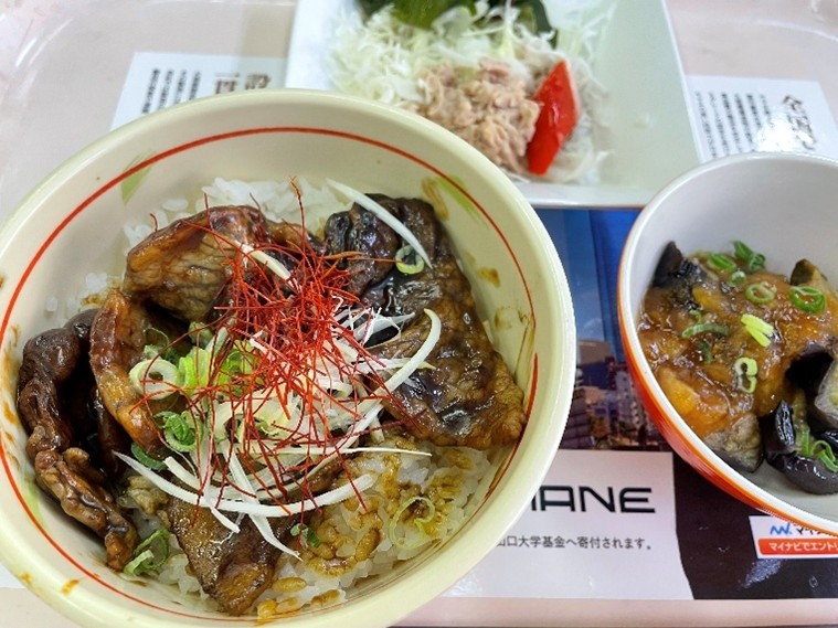 友達と学食のボーノに行きました。私は豚トロ炭火焼丼、海藻サラダ、なすのみぞれ煮を選びました。炭火焼丼は初めて食べましたが、タレがよくからんでいてとてもおいしかったです。混んでいたので席を探すのが大変でしたが、何とか友達と三人で座ることができました。